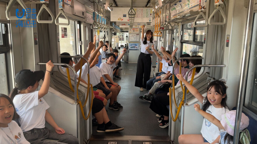 小学生は、学びの成果を掲出した広島電鉄のラッピング特別電車の出発式と試乗🚋