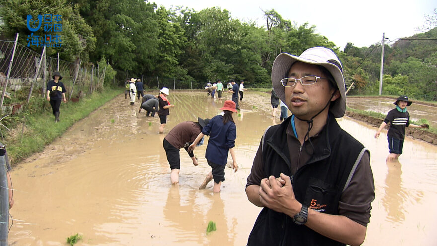 実はこの水田、毎年大量に排出され 処理問題が起きている広島名産牡蠣🦪の殻からできた肥料を、田植え前に撒いて実証実験した場所なんです。