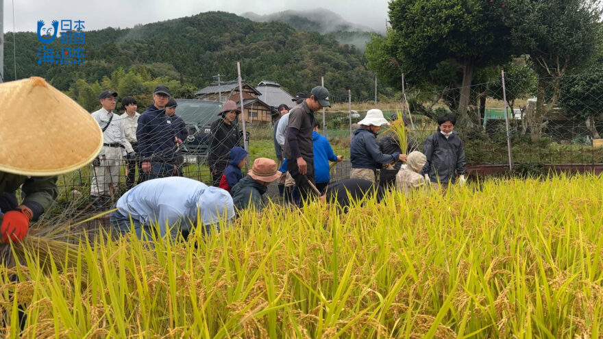 広島市内にある里山の水田で稲刈りが行われました🌾