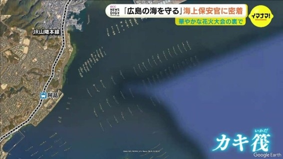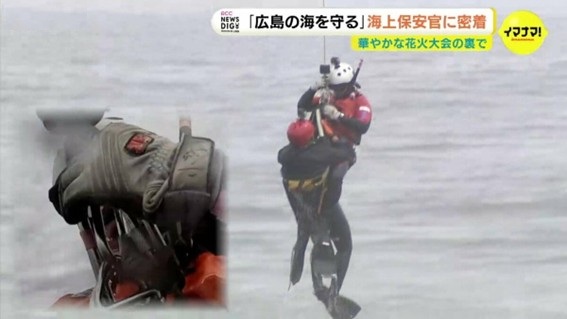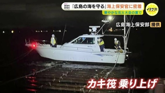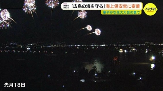 広島湾の名物である「カキいかだ」との衝突事故などが懸念される中、船上からの観覧客の安全を守るため、花火開始前から奔走した海上保安官たちの活動を取材。